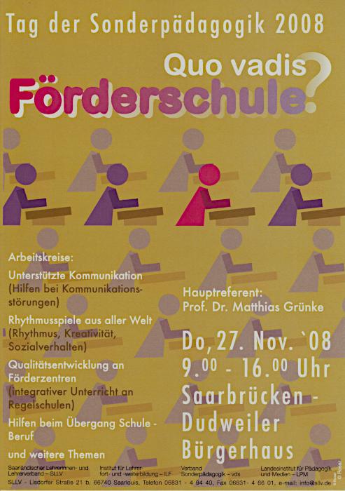 um, wie im Beispiel des Sonderpädagogik-Plakates aus 2001 aus tatsächlich nur 2 verwendeten Farben (rot und grün), im Ergebnis 4 zu erzeugen: weiß durch Auslassung, braun durch Überdrucken und dazu