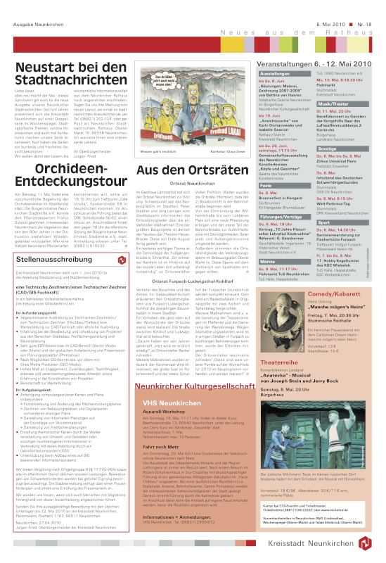 Relaunch des Layouts städtischer Seiten im Neunkircher Wochenspiegel